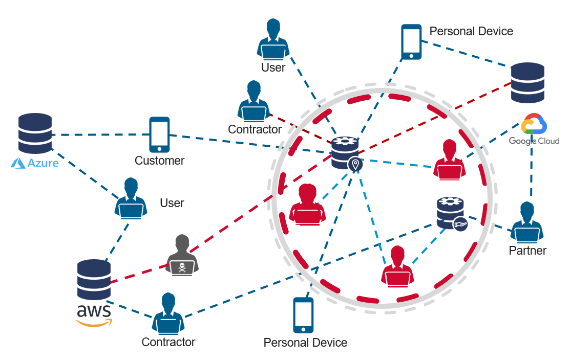 When the network perimeter disappears, you shift from protecting locations to protecting identities, devices, and the applications themselves — enforcing access based on who the user is, the context of the request, and the trustworthiness of the device rather than where the connection originates.